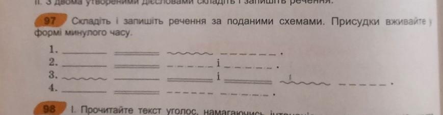 Вправа 97. Складiть i запишiть речення за поданими схемами. Присудки вживайте у формi минулого часу.