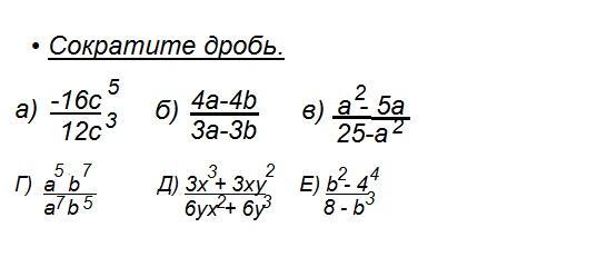 !!!35 балллов!!! Помогите пожалуйста. Сократите дроби. Задание прикреплено.