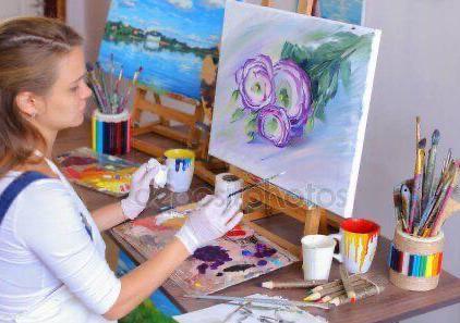 На этой фотографии изображена девушка, занимающиеся изобразительным искусством. Она так старательно выполняет свою работу, пытаясь изобразить настоящие цветы на полотне. Художница на столько трудолюбива, что это может заметить каждый, взглянув на эту фотографию. Её картины - это настоящие шедевры, которому не каждому удаётся такое изобразить. По фото видно, что у неё есть вдохновение. На её работах очень хорошо изображена природа и цветы. На каждый человеческий глаз они будут настоящими, так как она использовала много оттенков цветов и сумела передать то, что изображено.