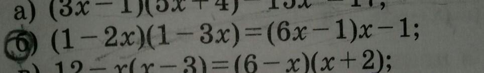 (1-2x)•(1-3x)=(6x-1)x-1. x=0,5. x=2^-1
