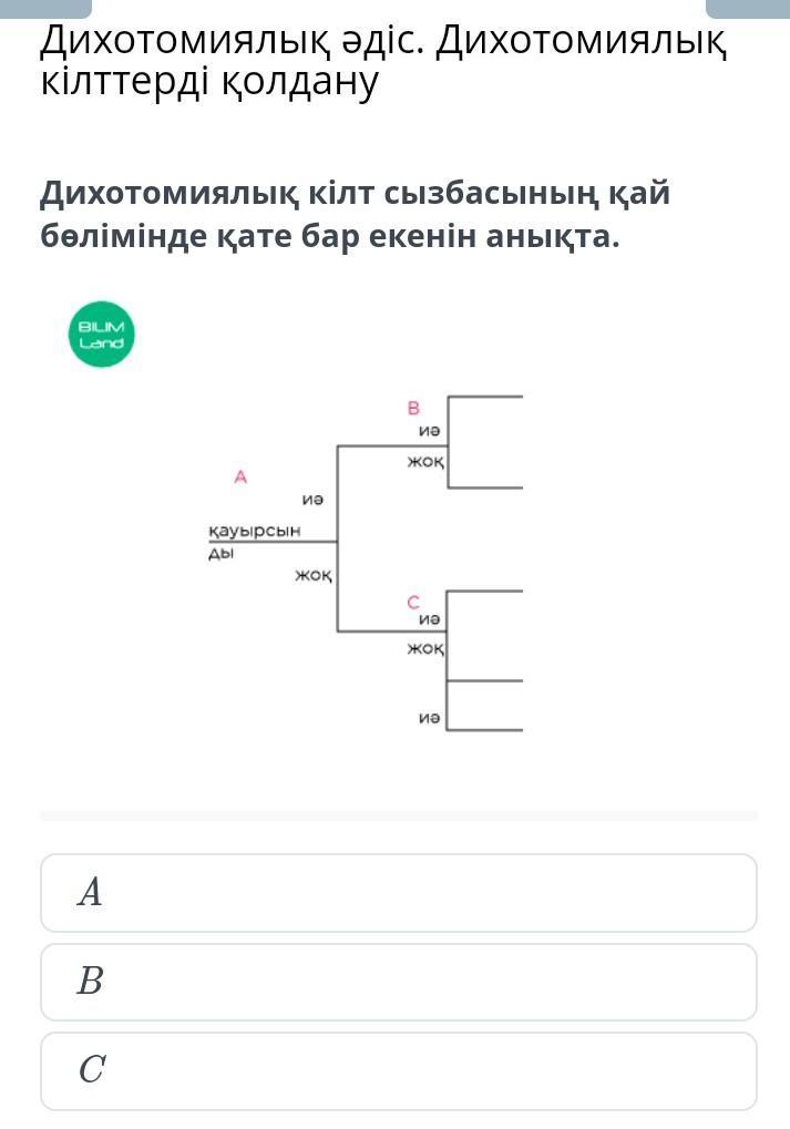 Дихотомиялык килт сызбасынын кай болиминде кате бар пожалуйста помогите срочно!!!!