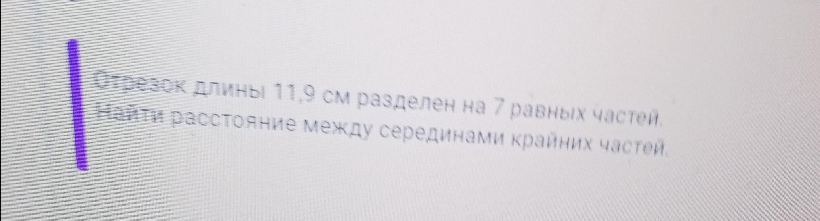 Отрезок длины 11,9см разделён на 7 равных частей. Найти расстояние между серединой крайних частей