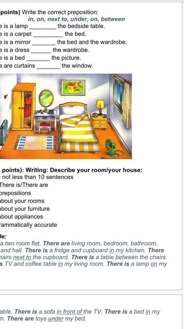 Task 2 (7 points): Writing: Describe your room your house: