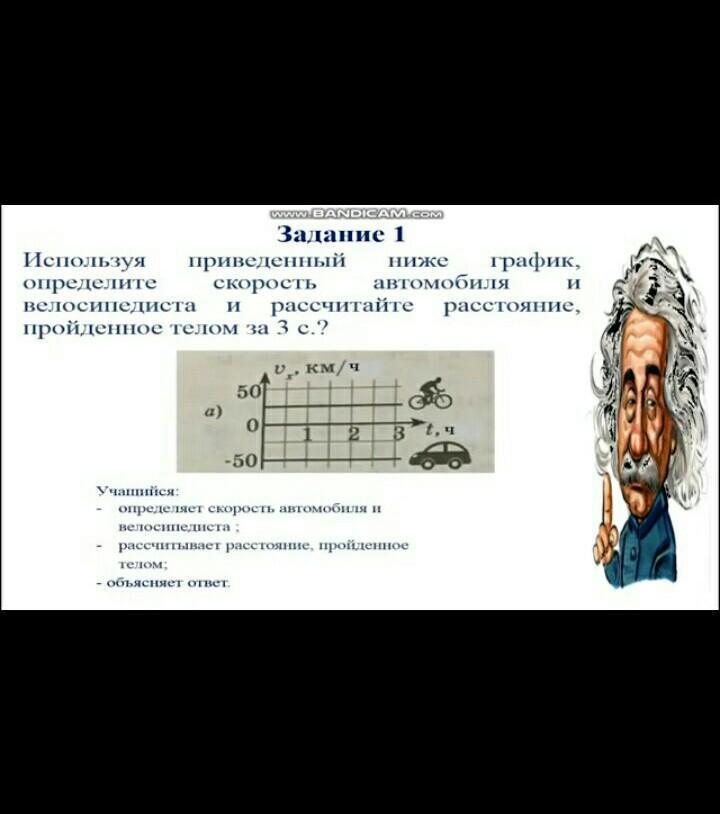 используя приведенный ниже график, определите скорость автомобиля и велосепидиста и рассчитайте расстояние, пройденное телом за 3 с.?