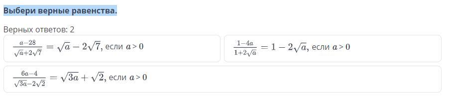 Объяснение: a-28/√a+2√7=√a-2√7 верно