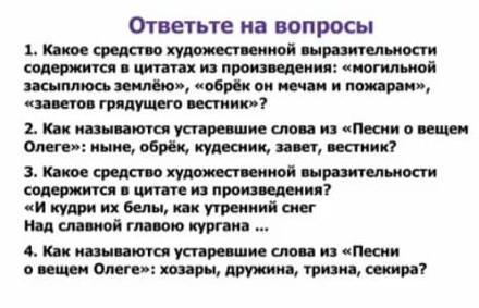 2. Как называются устаревшие слова из «Песни о вещем