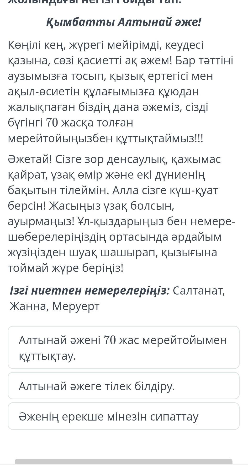 Алтынай әжені 70 жас мерейтойымен құттықтау