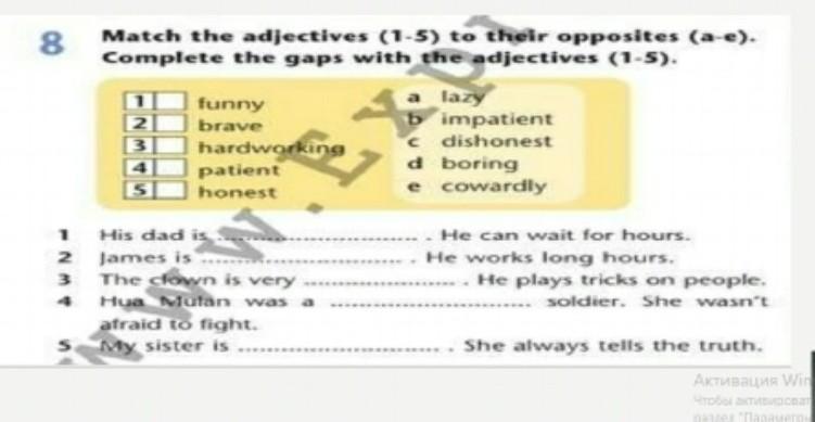 1.patient 2.hardworking 3.funny 4.brave 5. honest