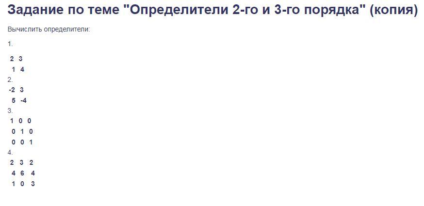 т.к. первая и вторая строки линейно зависимы (каждый элемент второй строки в 2 раза больше соответствующего элемента первой строки), то Δ=0