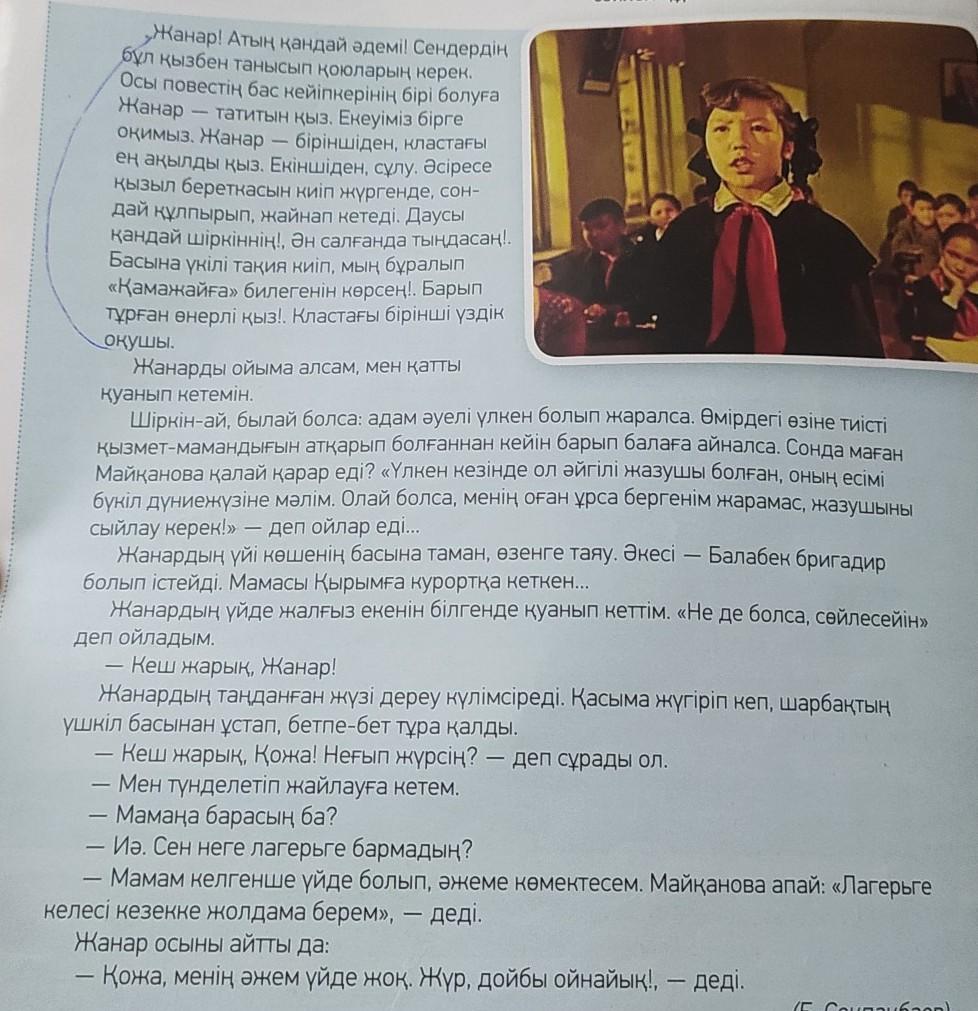 жанар! Какое красивое имя! Тебе нужно познакомиться с этой девушкой. Жанар - девушка, которая заслуживает быть одной из главных героинь этой истории. Учимся вместе. Жанар - это, прежде всего, самая умная девочка в классе. Во-вторых, красиво. Особенно это актуально при ношении красного берета. Какой уродливый голос! Если послушать песню, то увидишь, что представитель надел тюрбан на голову и танцевал под «Камажай». Талантливая девочка, которая ходит и стоит !. Первый лучший ученик в классе.