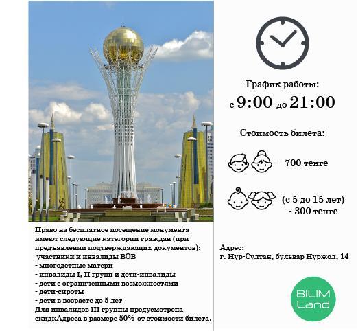 Так выглядит билет на посещение монумента «Астана-Байтерек». Изучи его.