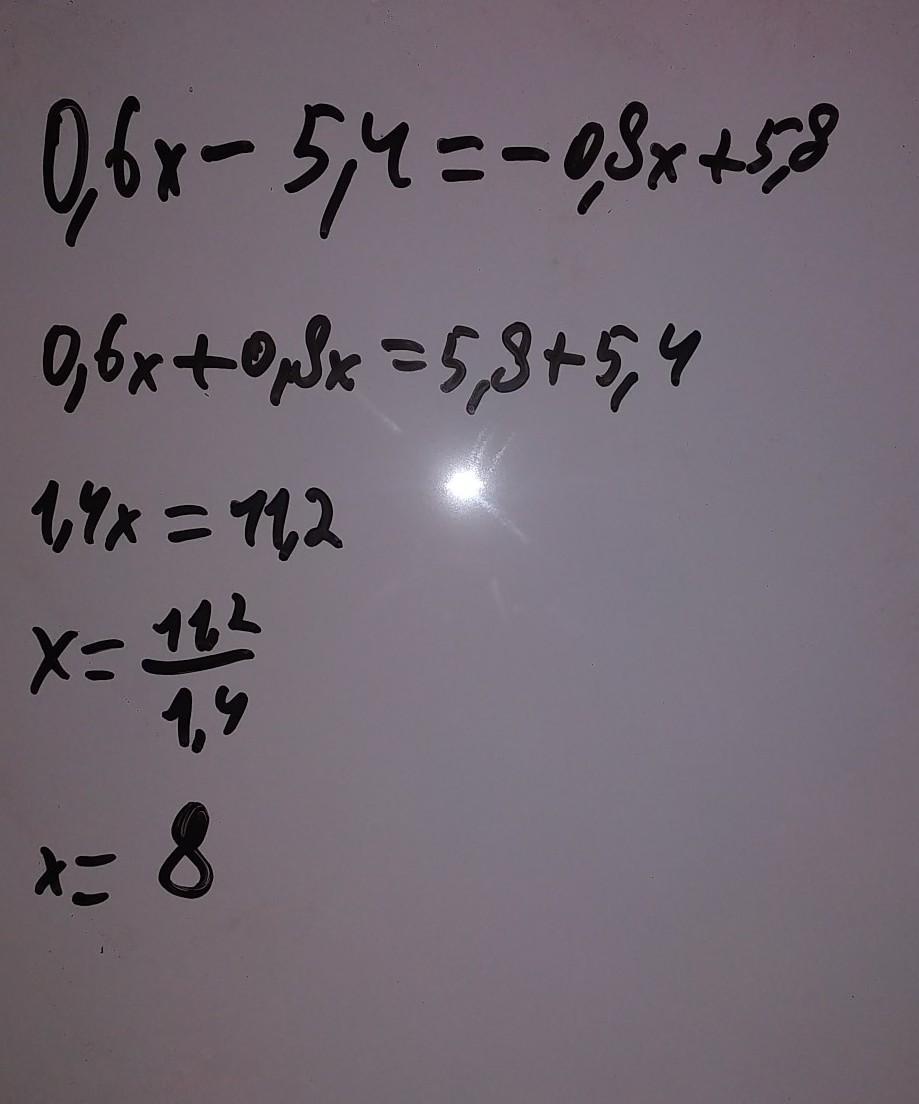 0,6х-5,4=-0,8х+5,8