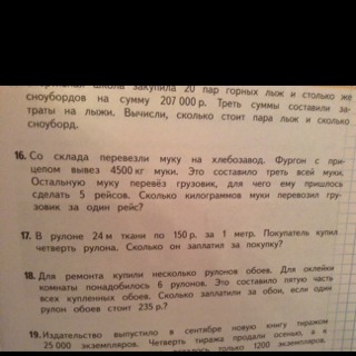 1)4500*3=13500(кг)-вся мука2)13500-4500=9000(кг)-что перевез грузовик3)9000:5=1800(кг)-1 рейс грузовика