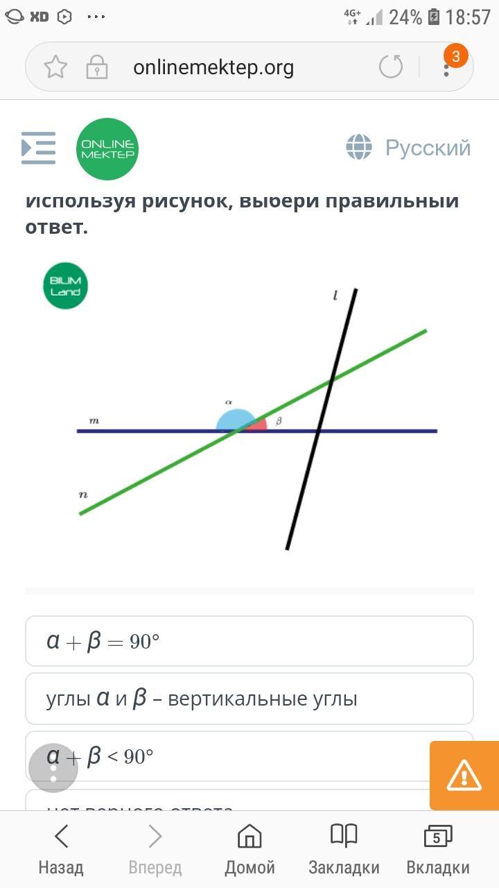 углы α и β - смежные. сумма смежных углов равняется 180° ⇒ 1 и 3 варианты ответов отпадают. также углы α и β не являются вертикальными, поскольку у них имеется общая сторона ⇒ 2 вариант ответа также не подходит. остаётся лишь последний вариант - нет верного ответа.