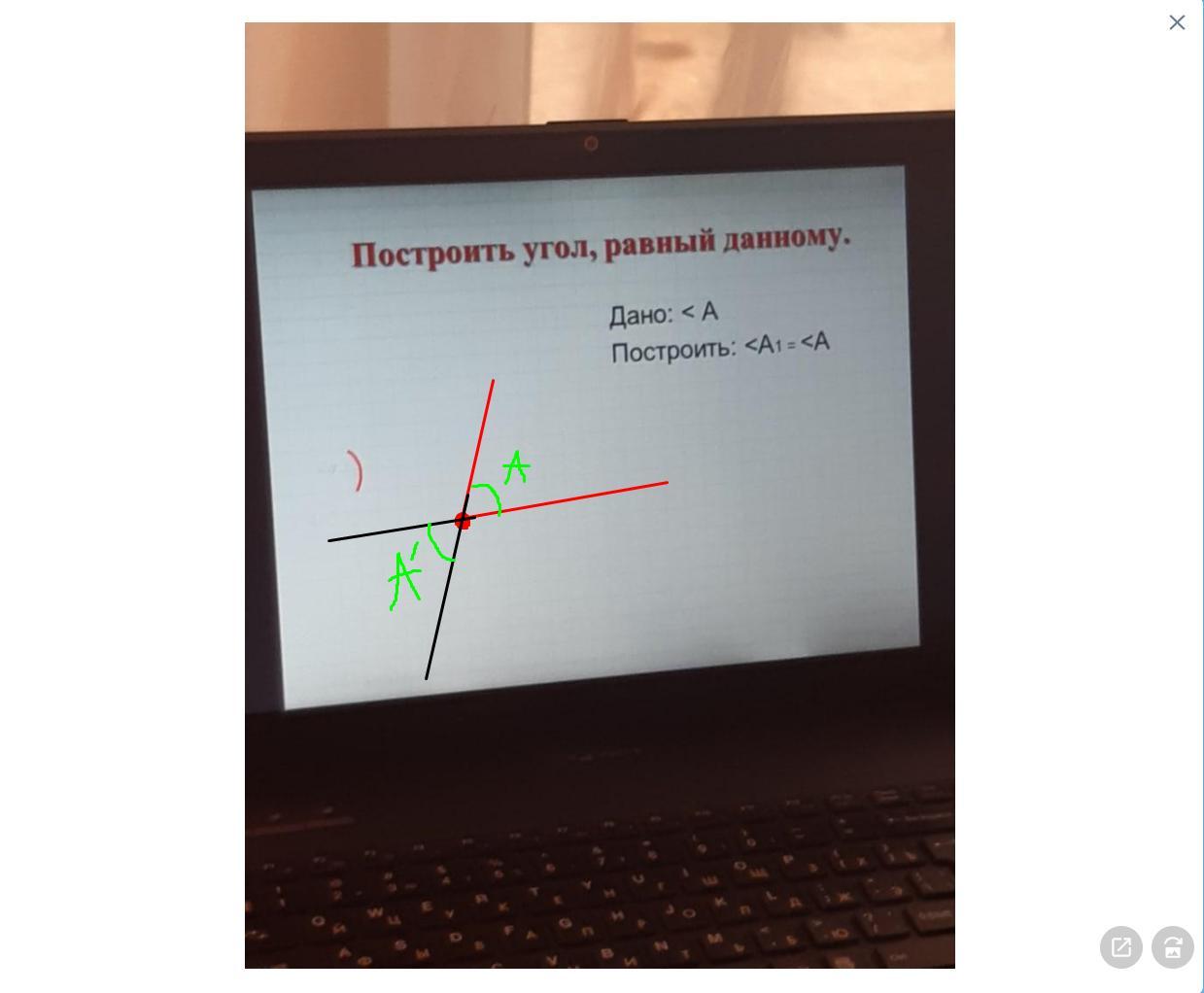 берем 2 лучи из которых состоит угл и строим продолжаем их в обратном направлении получаться 2 угла которые равны друг другу