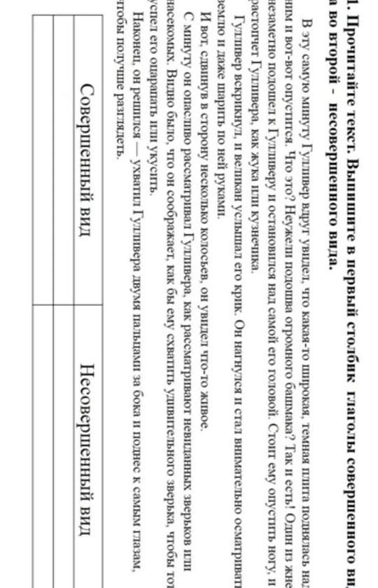 Прочитайте текст. Выпишите в первый столбик глаголы совершенного вида, а во второй несовершенного вида