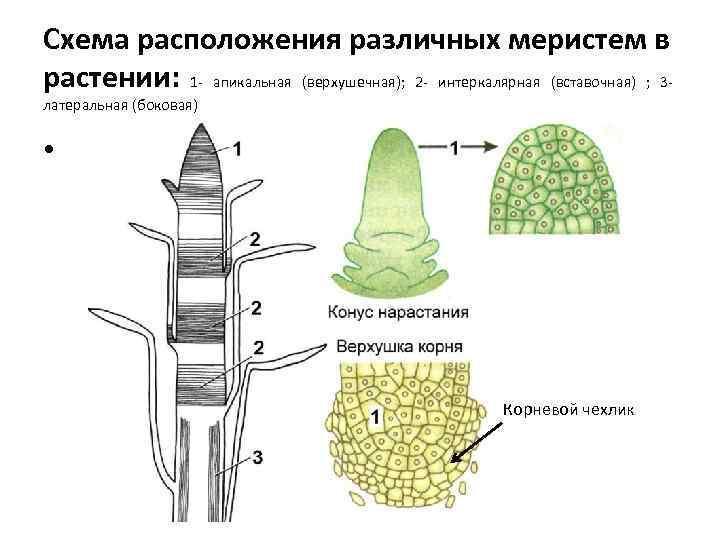 Образовательная ткань, которая расположена на конусе нарастания (самом кончике) побега обеспечивает рост растений в длину. У злаков образовательная ткань расположена не только на конусе нарастания побега, но и в узлах, поэтому они растут быстрее.