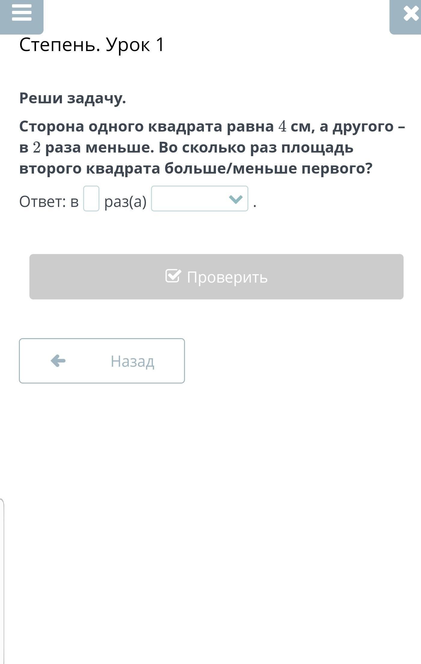Площадь первог квадрата 16 см, второго 8 см, в 2 раза меньше