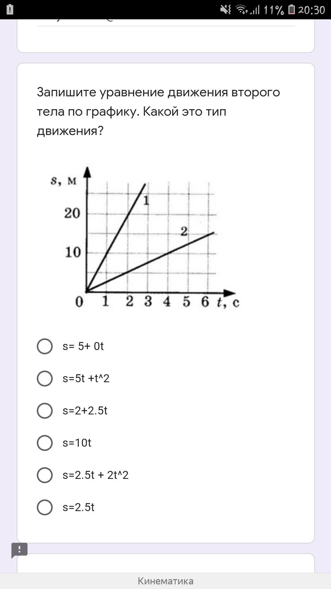 Возьмём точку на графике s = 10 м, t = 4 с, тогда v = s/t = 2,5 (м/с),