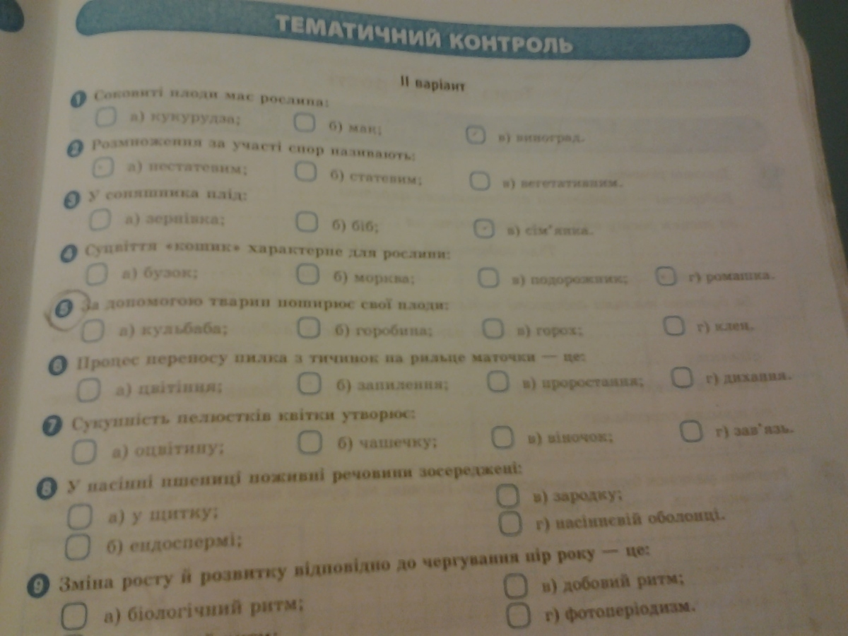 а) кульбаба. б) горобина. в) горох. г) клен ?