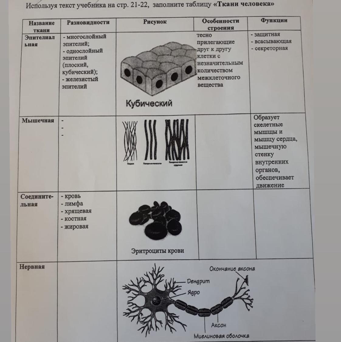 1. Мышечная ткань делится на гладкую( в особенности строения запиши,что клетки веретеновидные с одним ядром по середине,поперечно полосатую скелетную(много ядер,поперечно исчерченная, поперечно-полосатую сердечную.2. Соединительная ткань-много межклеточного вещества,клетки лежат рыхло.Функции транспорт веществ,соединение,опора,выделение,гомеостаз.