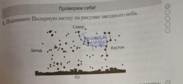 На рисунке под словом Север самая большая точка это полярная звезда, (под буквой в).