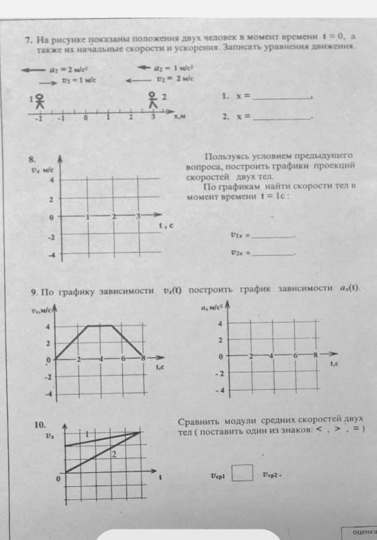8. формулы скоростей v1x=1-2t, v2x=-2-t