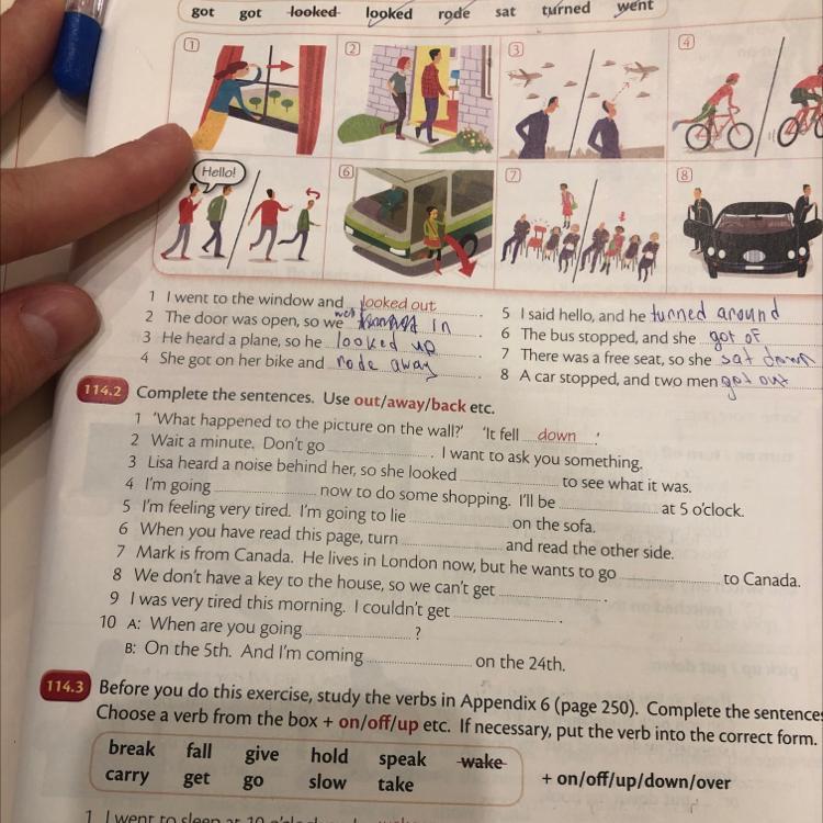 10) Затрудняюсь ответить, скорее всего первое это away, а второе back,в 10 не уверен.