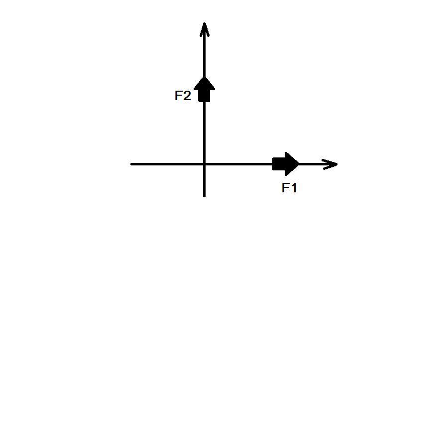 Знайдіть рівнодійну сил, зображених на рисунку, та її проекції на координатній осі, якщо |F1| = 8H, |F2| = 6H