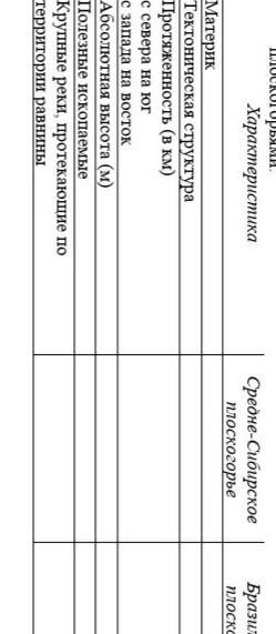 -Бразильское плоскогорье расположено в восточной части материка, а Среднесибирское в центре