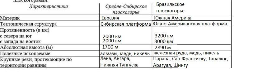 Сравните Средне-Сибирское плоскогорье и Бразильское плоскогорье.