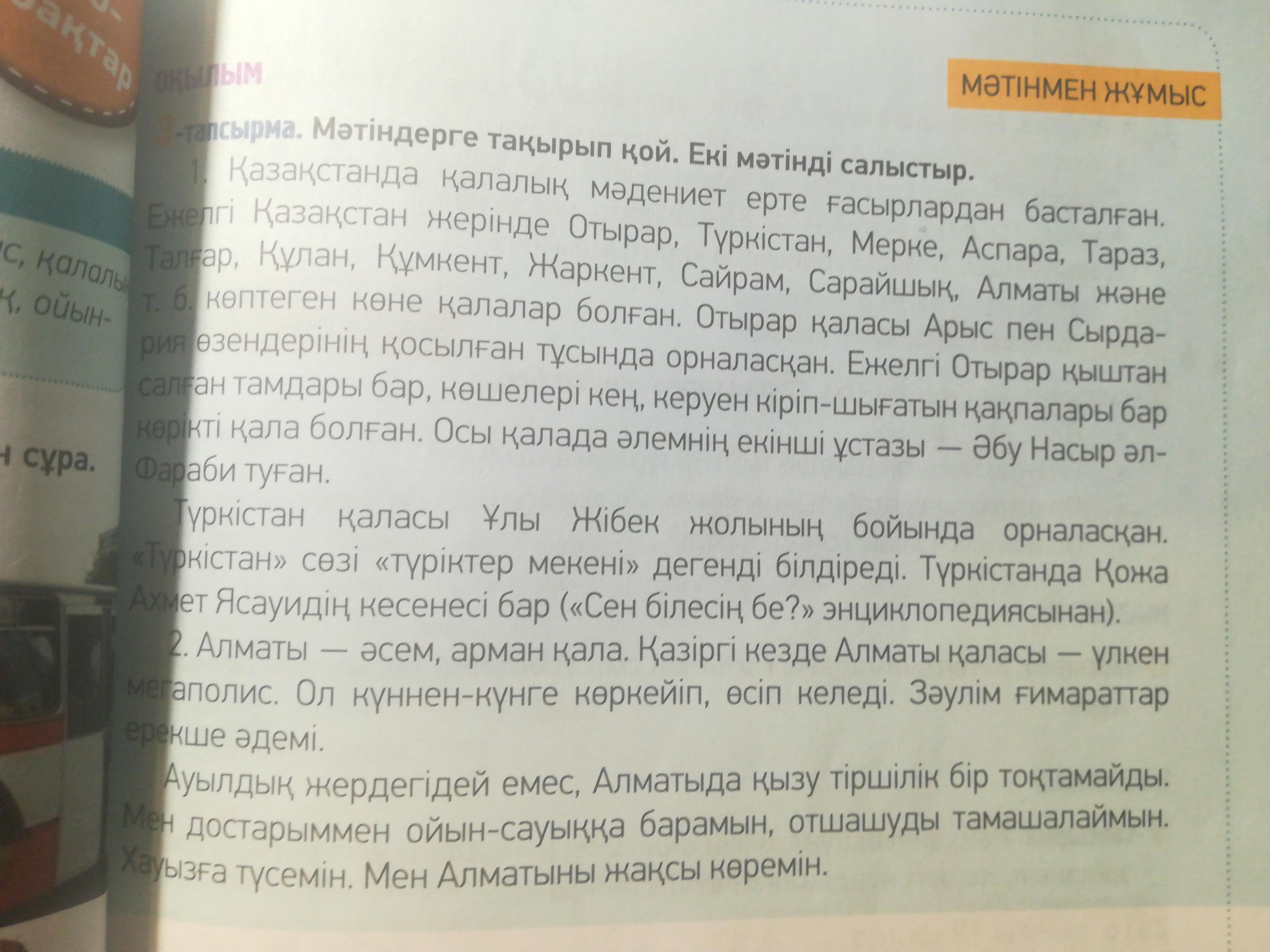 көне қалалар болған.2.Алматы Қазақстандағы ең ірі,әрі миллионер қала болып саналады.