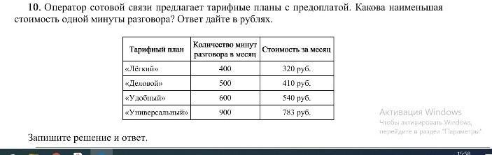 Лёгкий 320/400 = 0,80 рублей за минуту