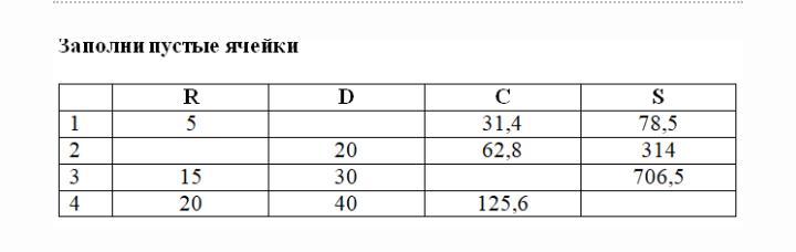 S = 3,14 • 20² = 3,14 • 20• 20 = 1256