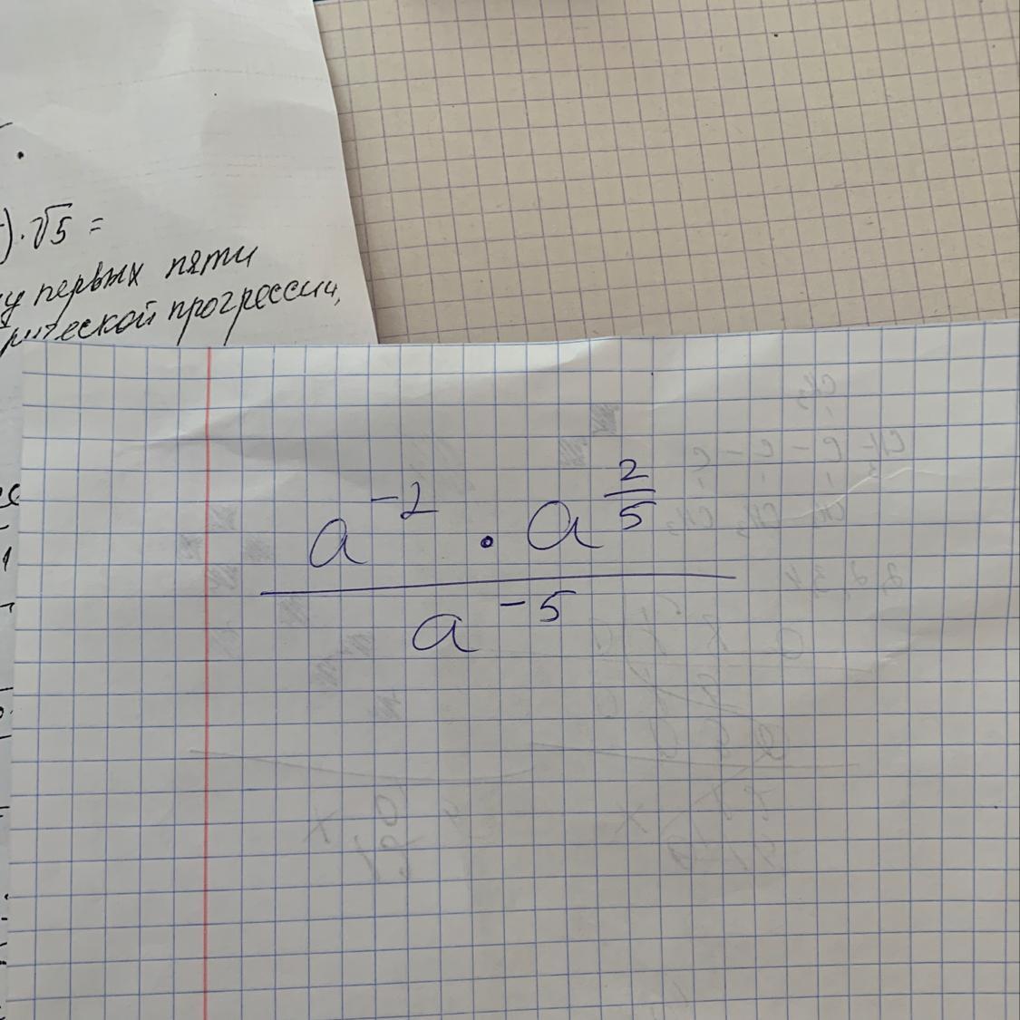 \frac{a^{-2}*a^{\frac{2}{5}}}{a^{-5}}=\frac{a^{-2}*a^{0,4}}{a^{-5}}=a^{-2+0,4-(-5)}=a^{-2+0,4+5}=a^{3,4}