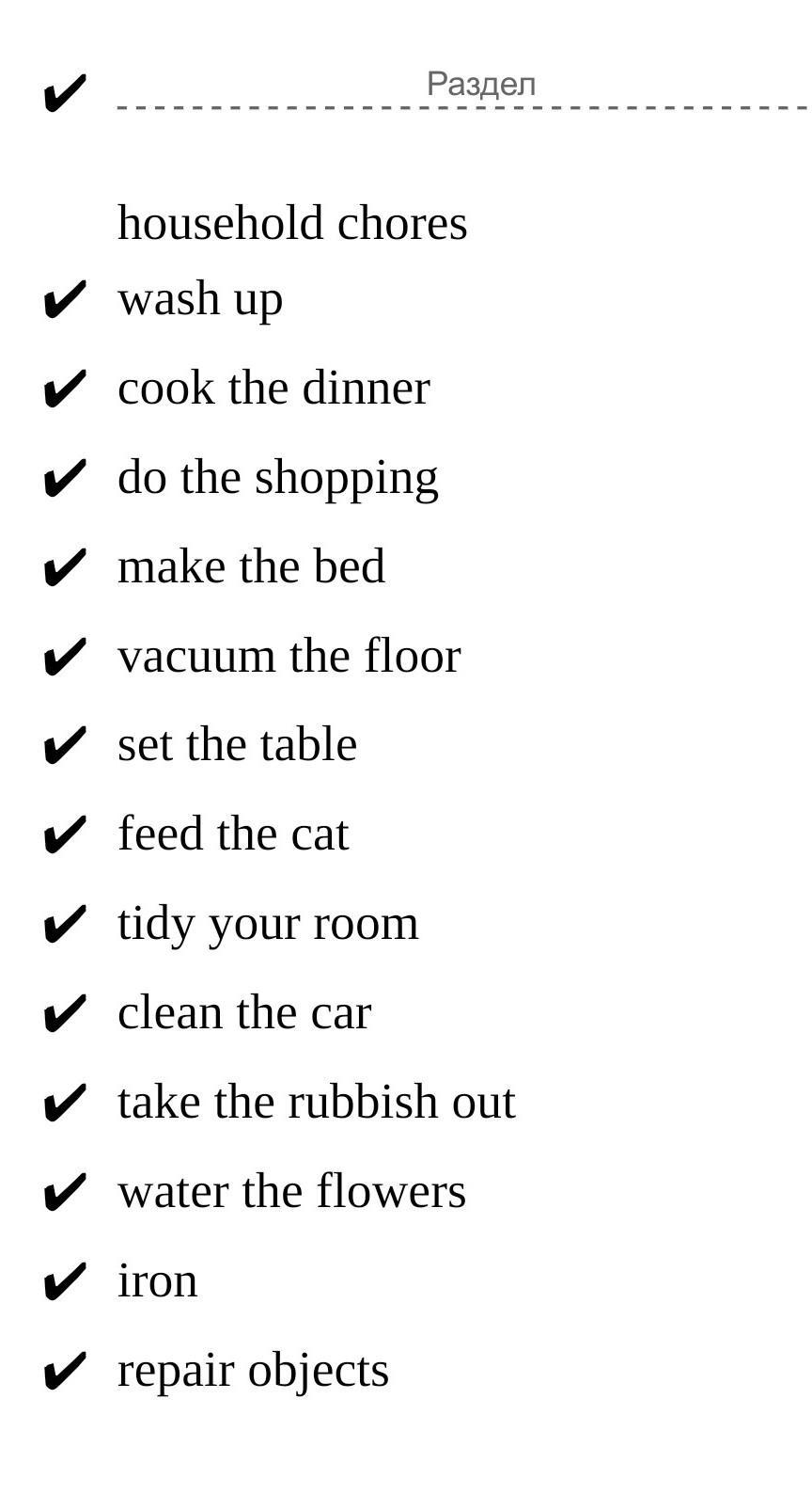 Расскажите о домашних обязанностях в Вашей семье, используя лексику урока.