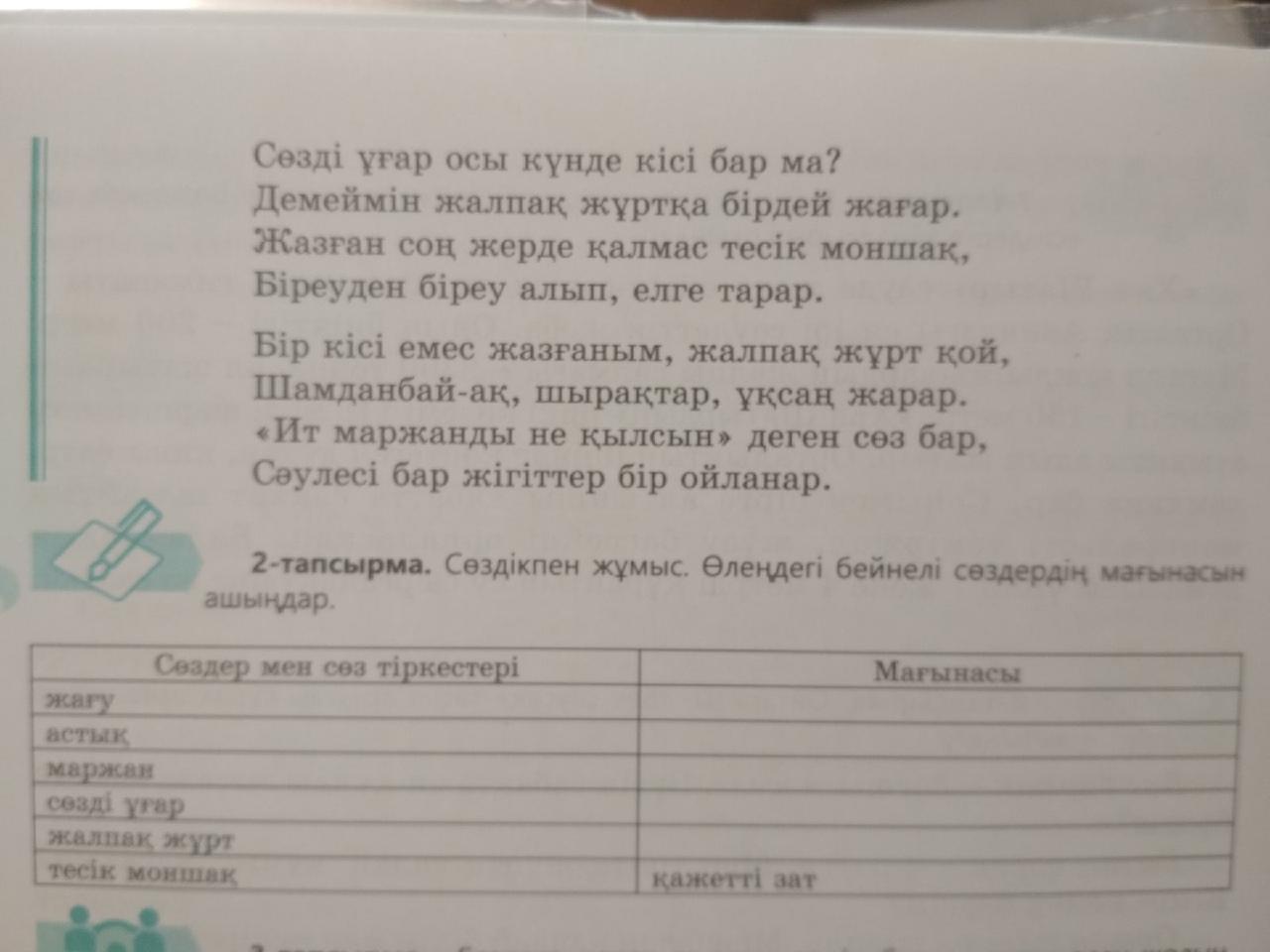 2-т. Сөздікпен жұмыс. Өлендегі сөздердің мағынасын ашыңыз/ раскрыть образное значение слов.