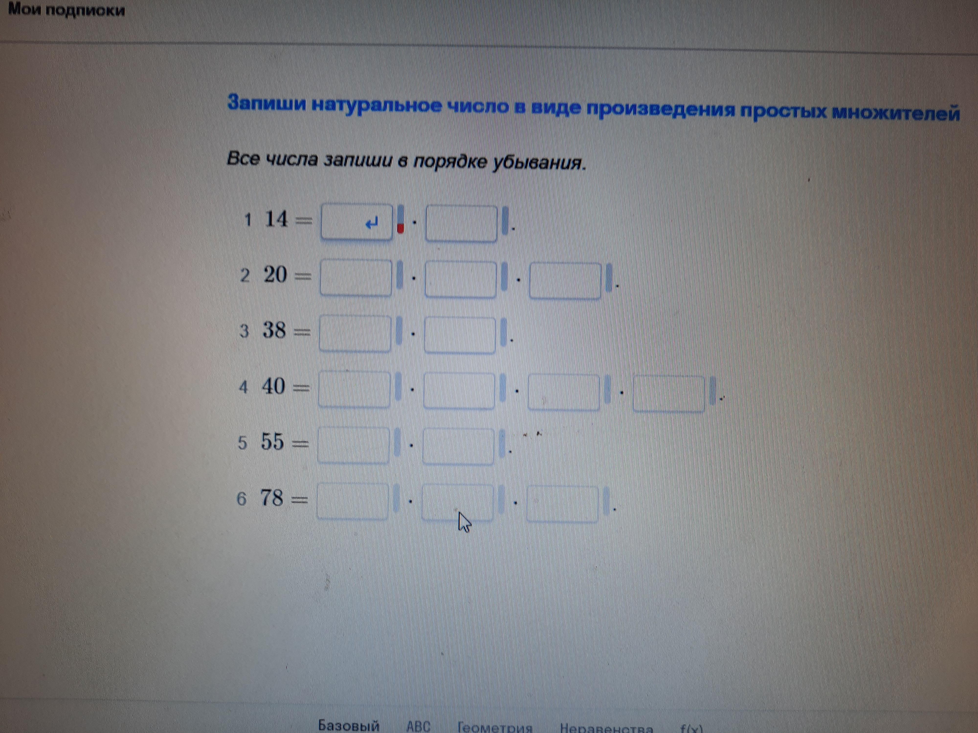 числа которые умножаешь нужно написать в порядке убывания