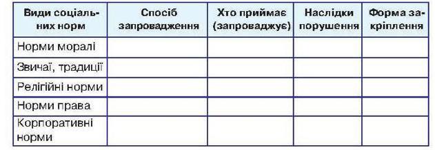 Вид норм - Спосіб запровадження - Хто приймає (запроваджує) - Наслідки порушення - Форма закріплення
