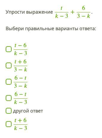 t/k-3 + 6/3-k = t/k-3 + 6/-(k-3) = t/k-3-6/k-3 = t-6/k-3