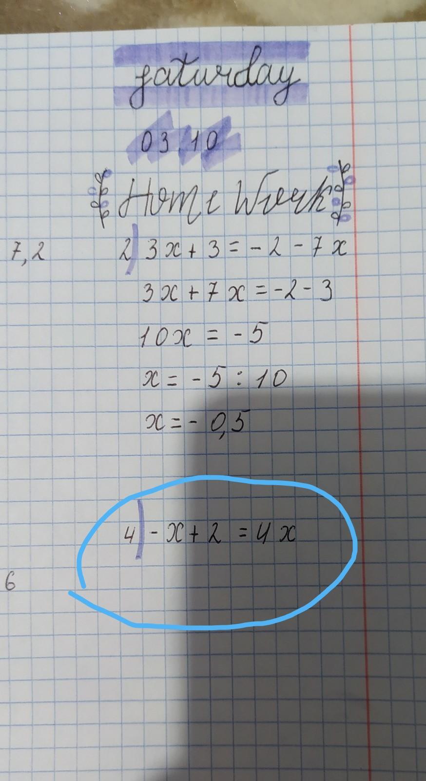 -x+2=4x ПОМОГИТЕ РЕШИТЬ ПОЖАЛУЙСТА