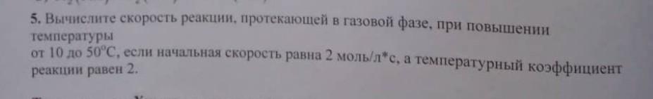 Vt2=Vt1*y^(∆T/10)=2моль/л*с*2^(50-10/10)=32 моль/л*с