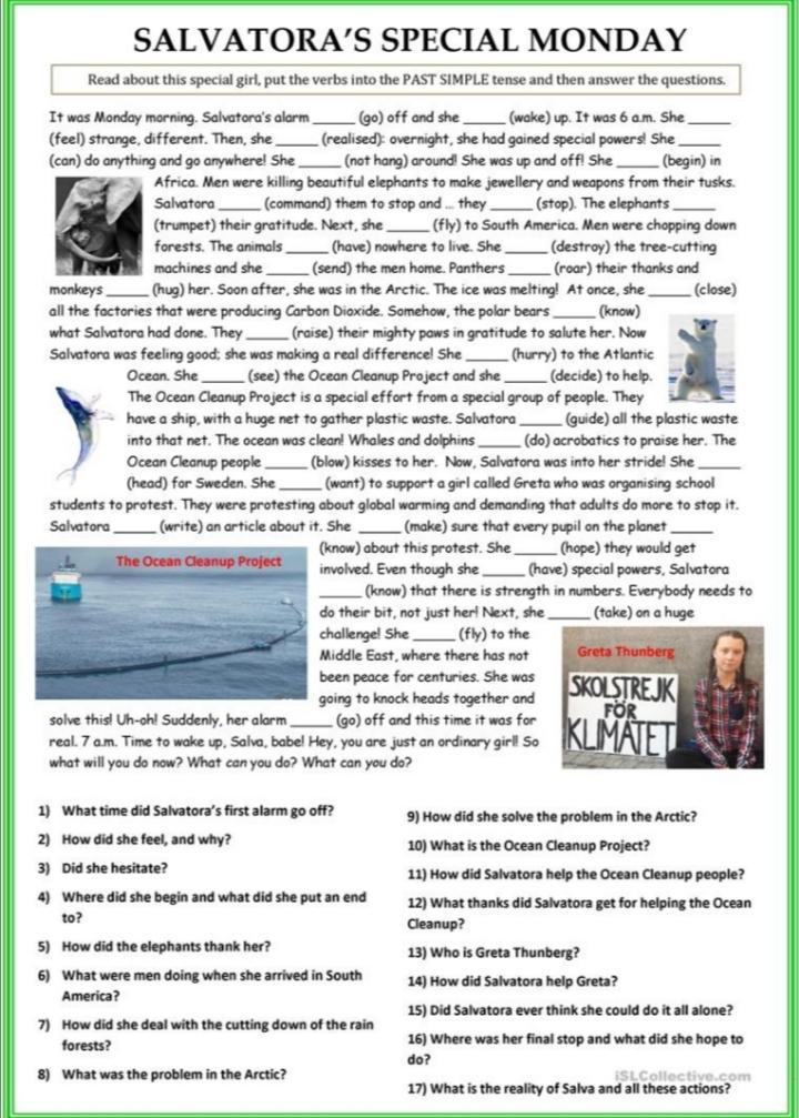 Went , woke , felt , realized , could , didn’t hang , began , commanded , stoped , trumpeted , flew , had , destroyed ,send , roared, hugged, closed, knew , rose , hurried, saw , decided guided , drew , blew , headed , wanted, wrote, knew , took , flew , went
