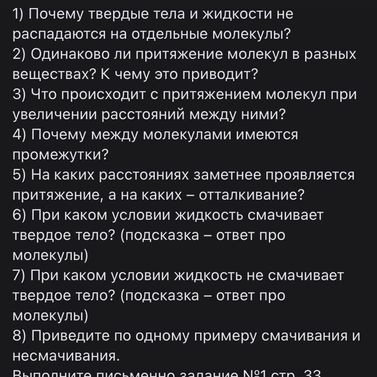 2. У различных веществ будут различные притяжения молекул. Лучше всего они проявляются в твёрдых телах из-за наличия формы, у жидкостей они проявлены слабее, а у газов самое слабое из-за большого расстояния молекул.