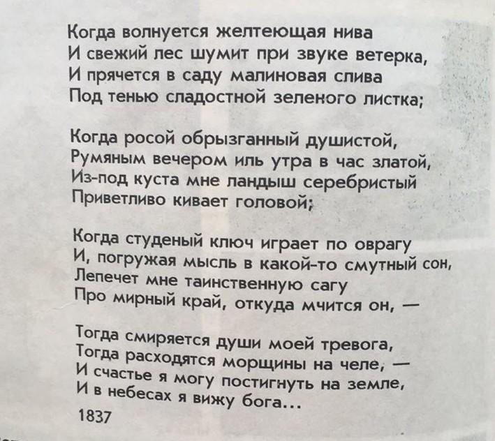 моё отношение к прочитанному произведению Лермонтова "когда волнуется желтеющая нива"
