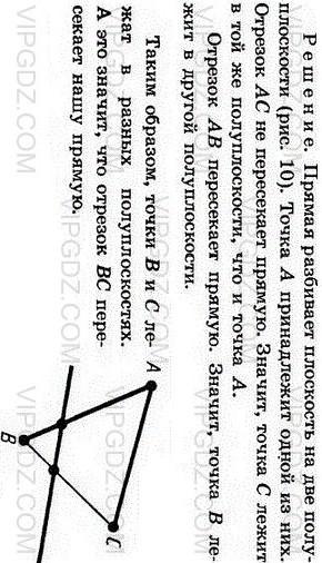 Даны прямая и три точки A, B, C, не лежащие на этой прямой. Известно, что отрезок AB пересекает прямую, а отрезок AC не пересекает ее. Докажите, что отрезок BC пересекает эту прямую.