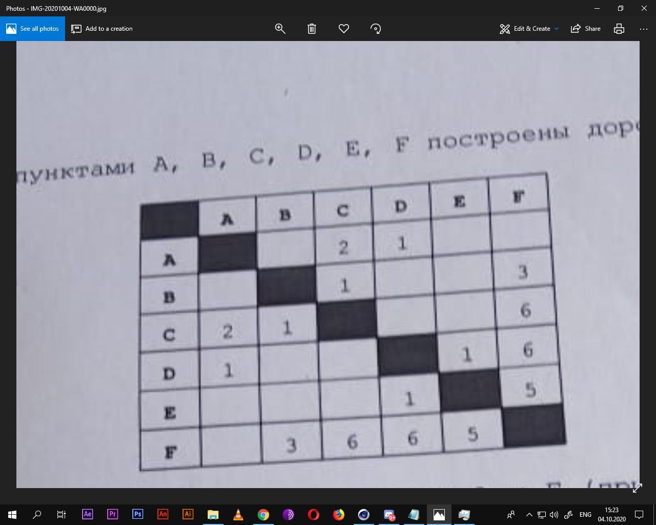 между населёнными пунктами a b c d e f построены дороги протяжённость которых приведена в таблице определите длину кратчайшего пути между пунктами A и F