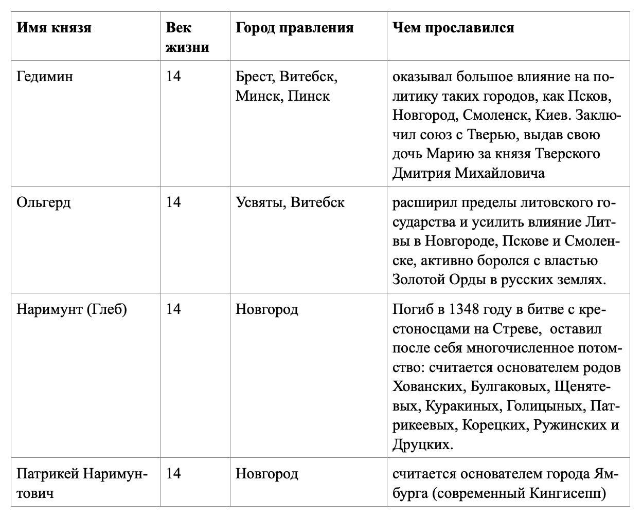 В истории России были знаменитые князья литовского происхождения. Назовите нескольких из них. В каких веках они жили? В каких городах Руси они правили? Чем прославились? С какими русскими князьями они союзничали?