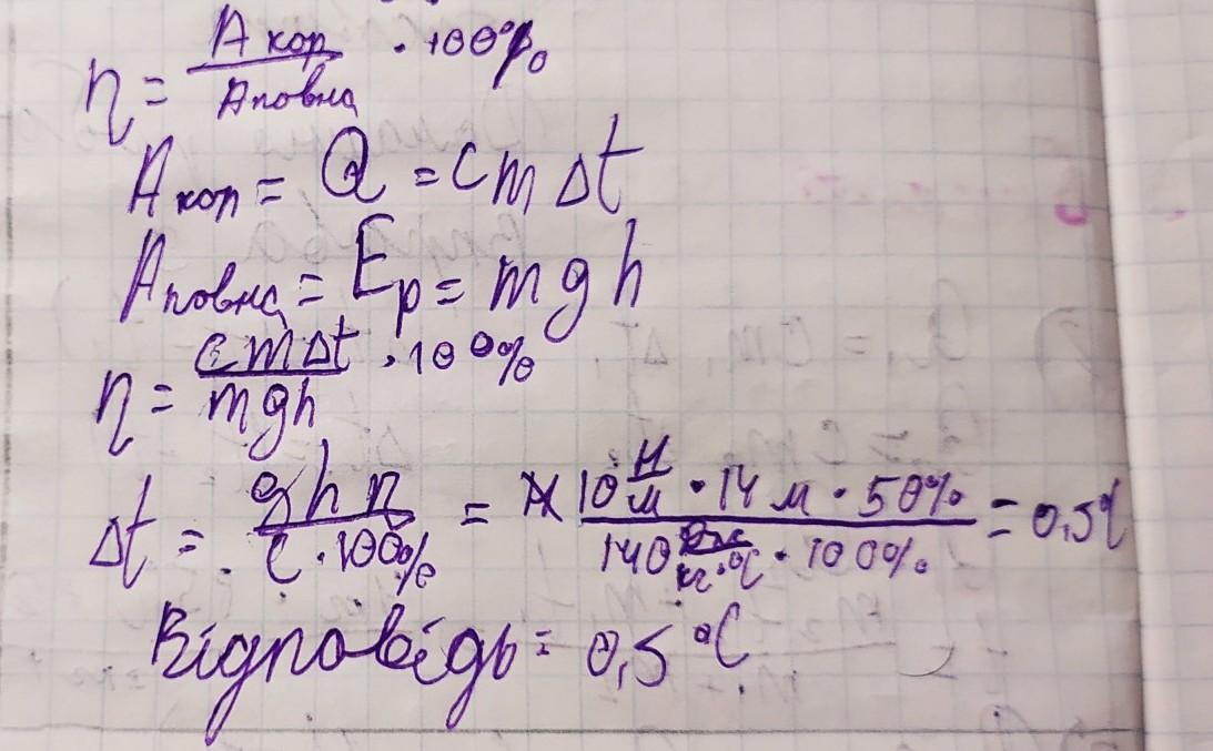 З висоти 14м на пісок падає свинцева куля.На скільки градусів вона нагріється, якщо 50% потенціальної енергії кулі перейти в ії внутрішню енергію?