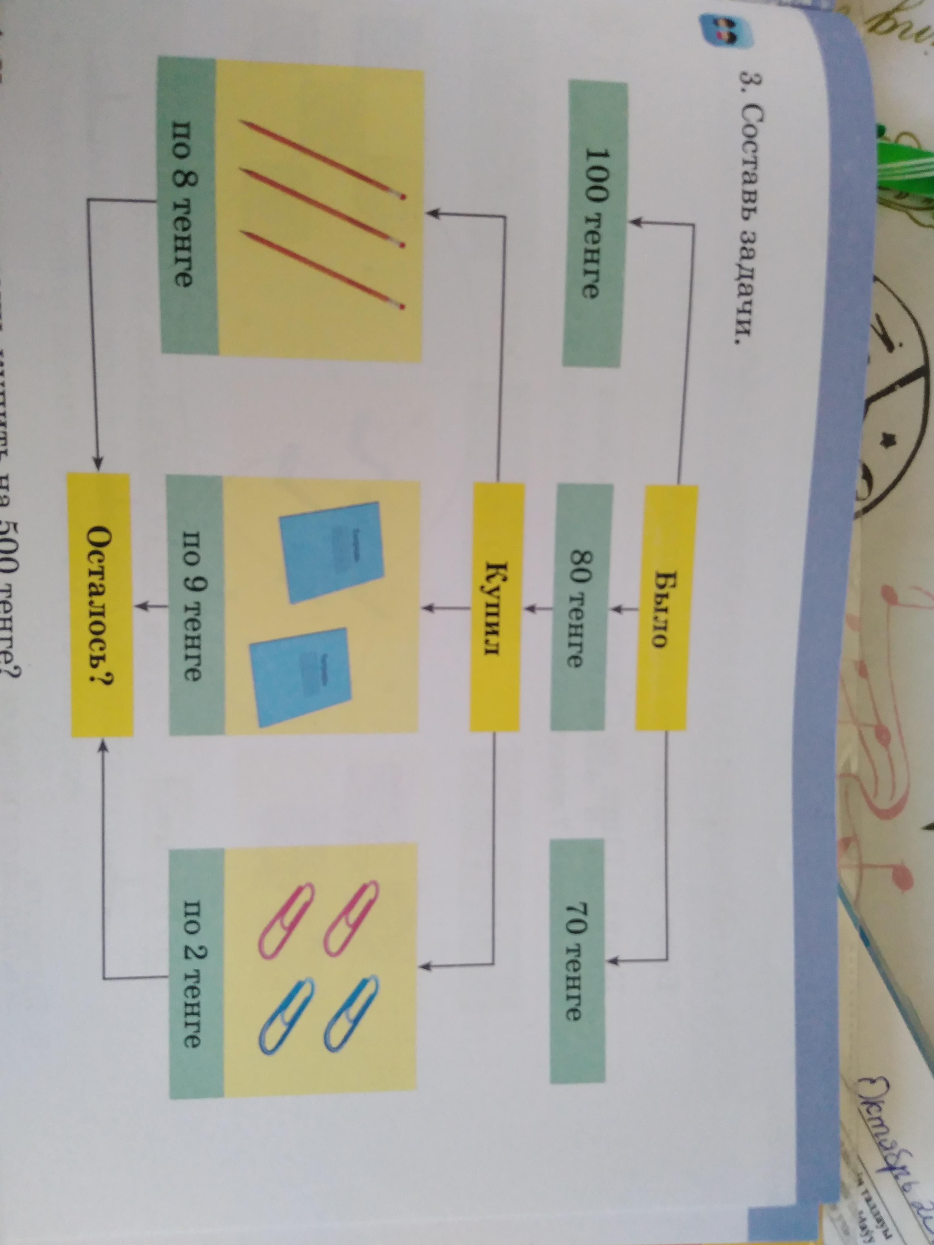 Купили- 2 тетради по 9 тенге